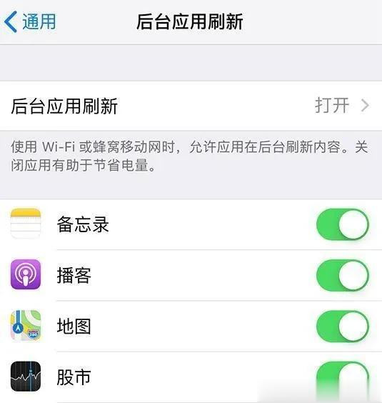 关闭方法: 进入【设置】-【通用】-【后台应用刷新】,建议直接选择“关闭”。或者,你可以根据需求,保留微信、QQ等通讯类应用,关闭其他不常用的。